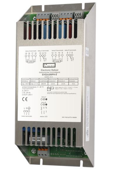 ballast with enhanced operation features for two 4-pin UV-lamps, lamp power 40...200W